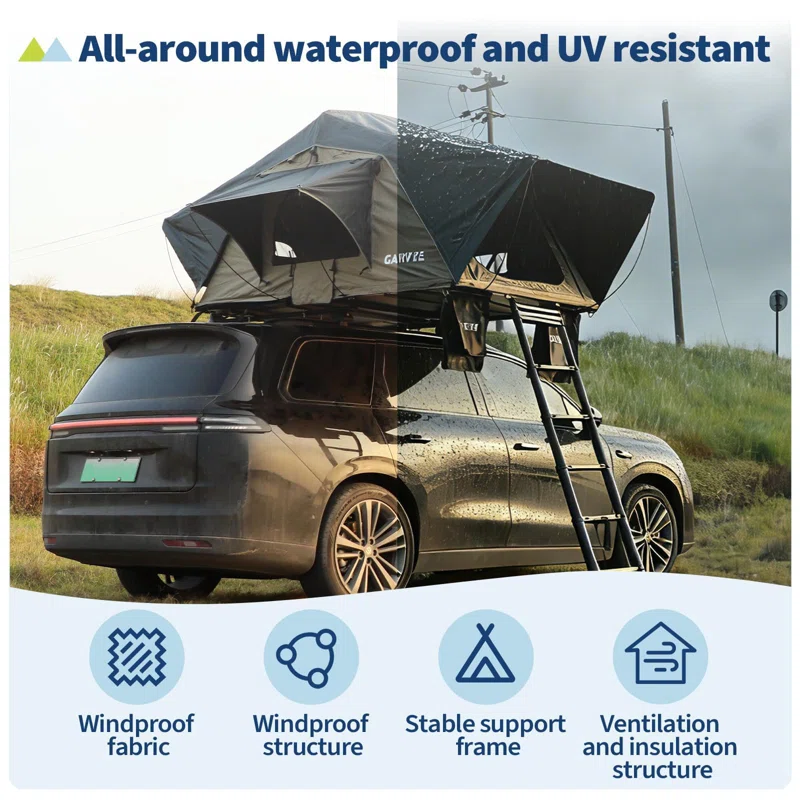 • Sturdy & Wind-Resistant Build: Built with a premium aluminum frame and 304 stainless steel brackets, this rooftop tent offers strong stability. Its telescopic ladder and secure roof rack tent design ensure reliable support and enhanced wind resistance.